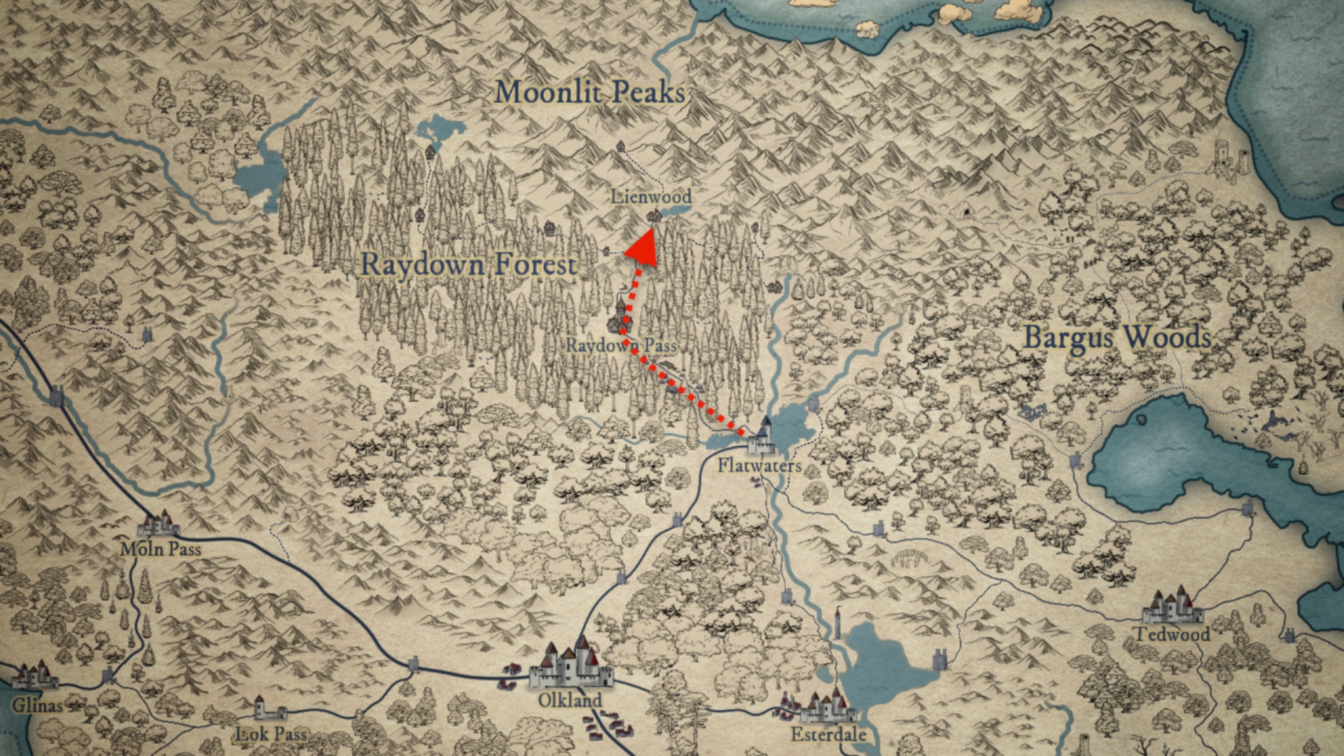Now far from Flatwaters, Tyler crosses the vast Raydown forest. He will be able to make one last stop in the regional capital, Raydown Pass, before his final stage towards the village of Lienwood.